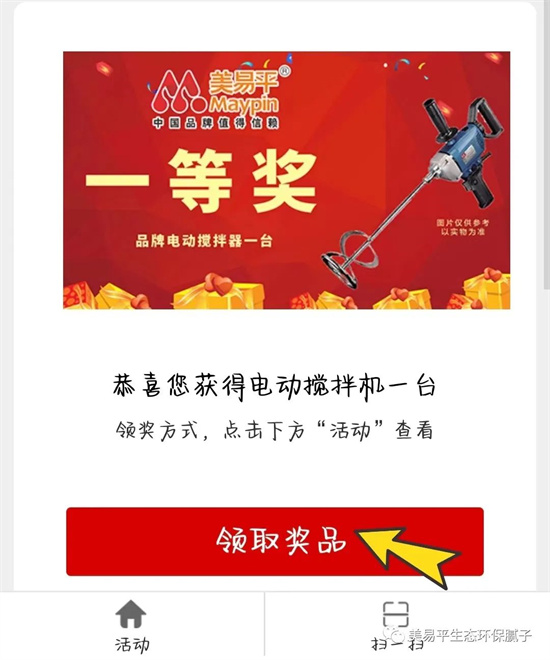 關注美易平生態環保膩子公眾號→獎品兌換→領取二維碼